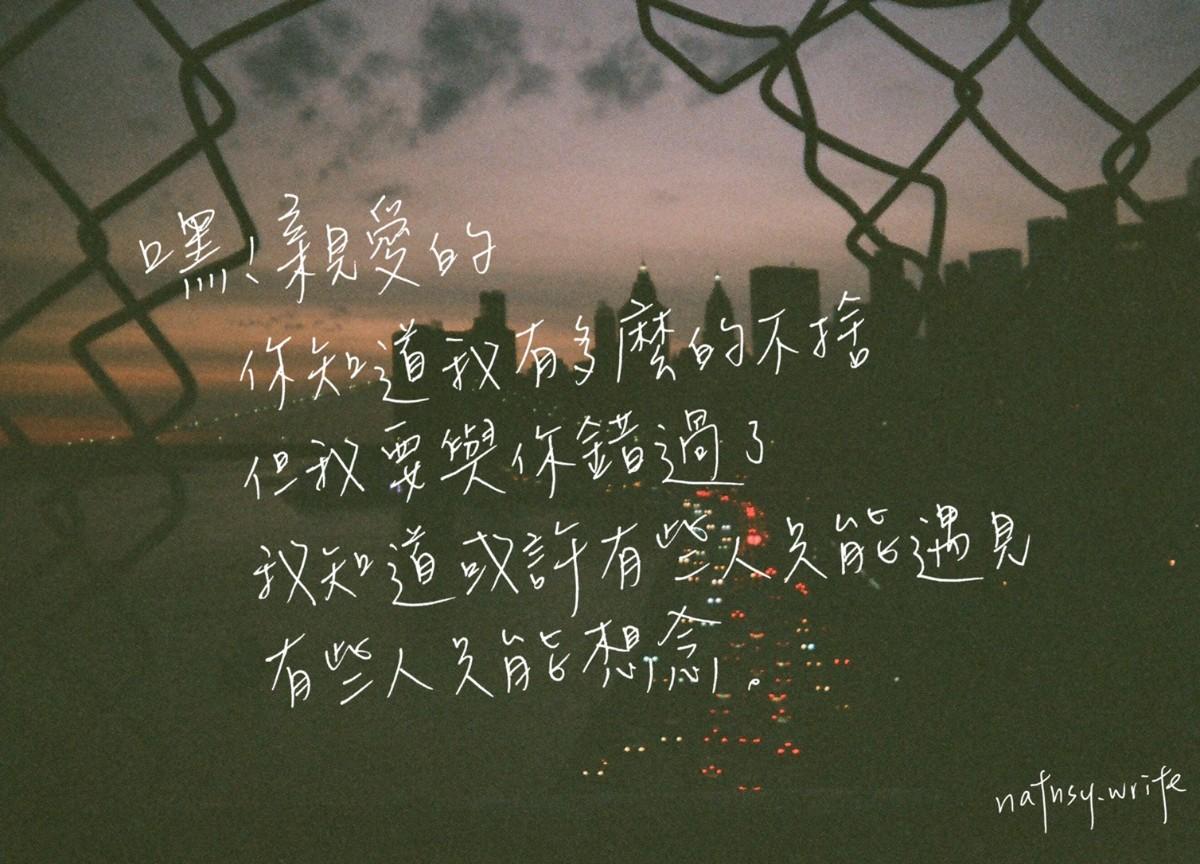 或許我再怎麼的不捨 我要與你錯過了 有些人或許只能遇見,但有些人只能想念 而我,只能想念 ——— 圖▫️ @pexels 文▫️ @taylorlmw#想把餘生的溫柔都給你 寫▫️ @nathsy.write 〰️〰️〰️〰️〰️ #寫字#手寫#手寫字#手寫文字#手抄#手寫語錄#write #萱瀠手寫#nathsy_write#習字#閱讀筆記