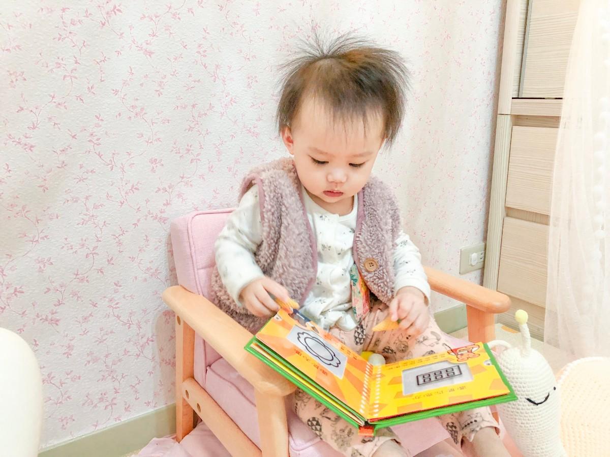 除了在沙發上玩玩具之外 也會在沙發上閱讀書籍 可以培養良好的閱讀習慣~