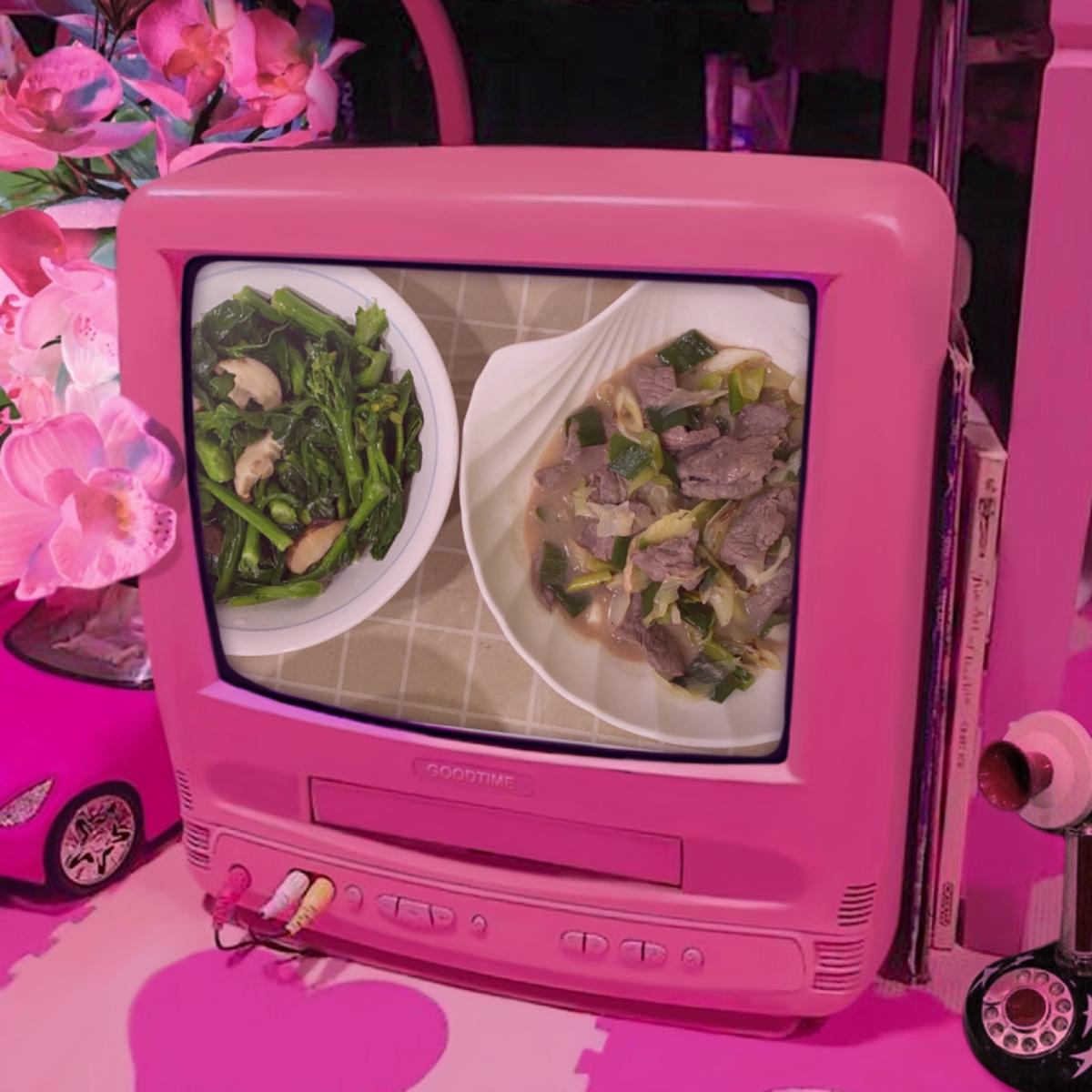本日菜單「日本蔥炒牛肉」、「清炒芥蘭」