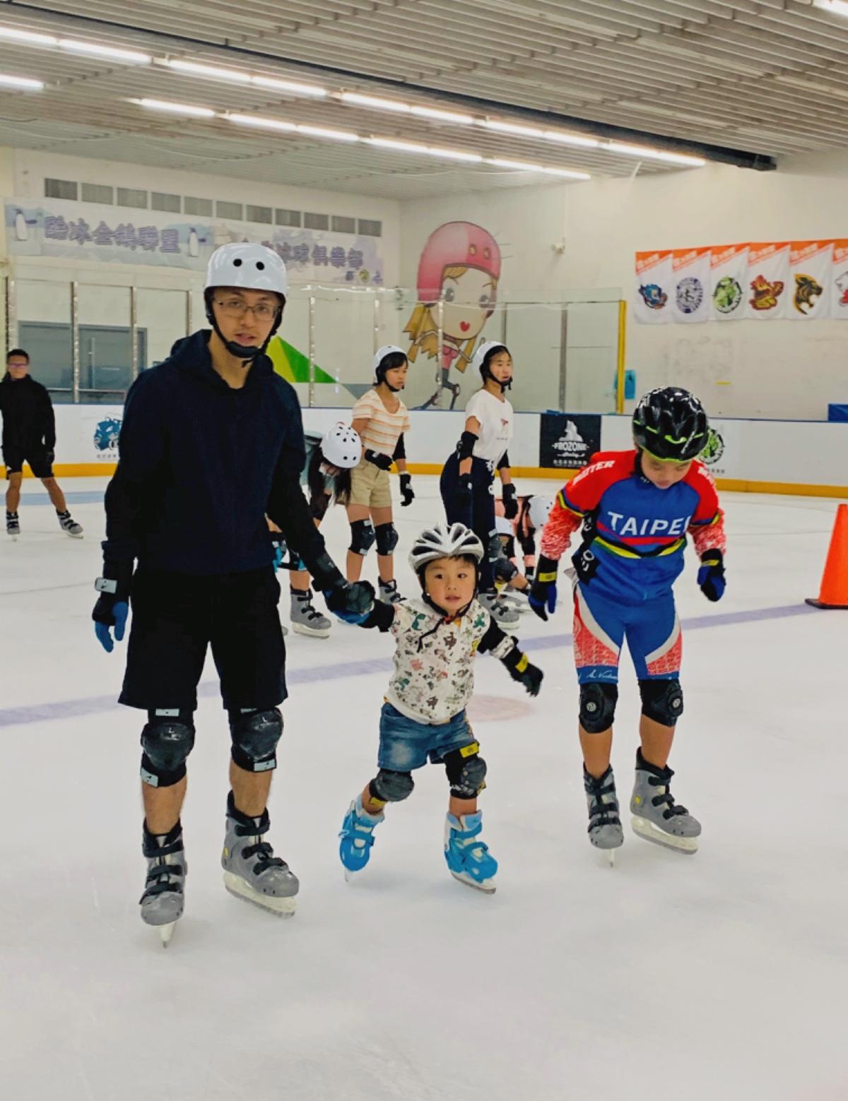 有直排輪底子的睿,(睿爸是訓練國手的直排輪教練)居然馬上就能在冰面上獨自行走了呢!應該是直排輪的原理跟滑冰很相似的緣故吧😁😁😁