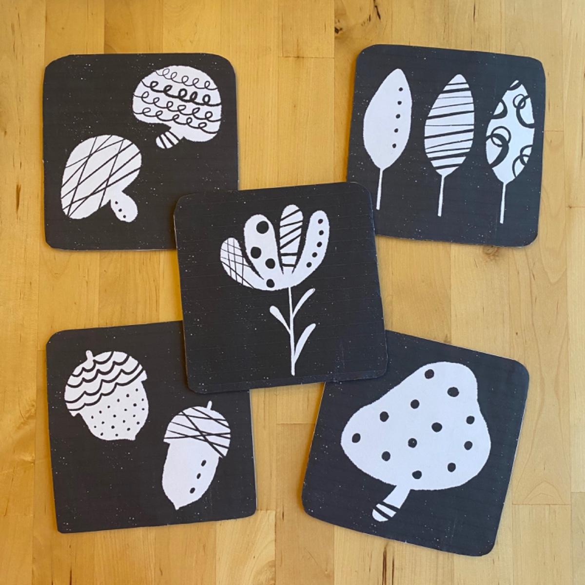 市面上販售很多黑白圖卡,月子中心也幾乎都會提供,懷第一胎的時候來不急畫,第二胎的時候終於有時間可以完成,自己想要的圖卡形狀了!