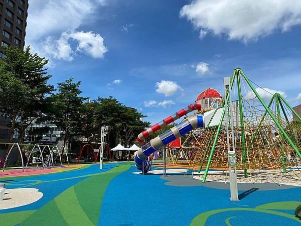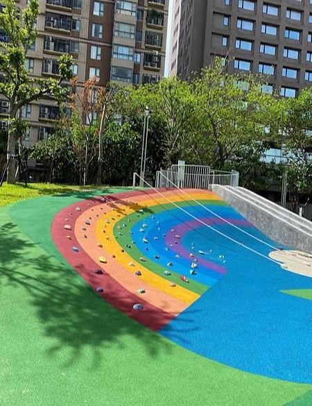 整個公園都鋪滿彩色的保護PU,好看好拍又不怕痛。