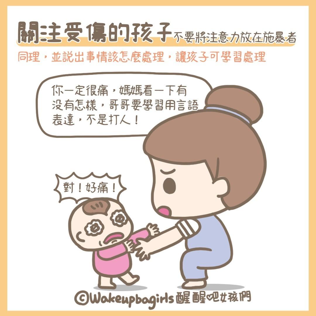 例:你一定很痛很難過,媽媽看一下有沒有事,哥哥要學習用言語表達,而不是打人。