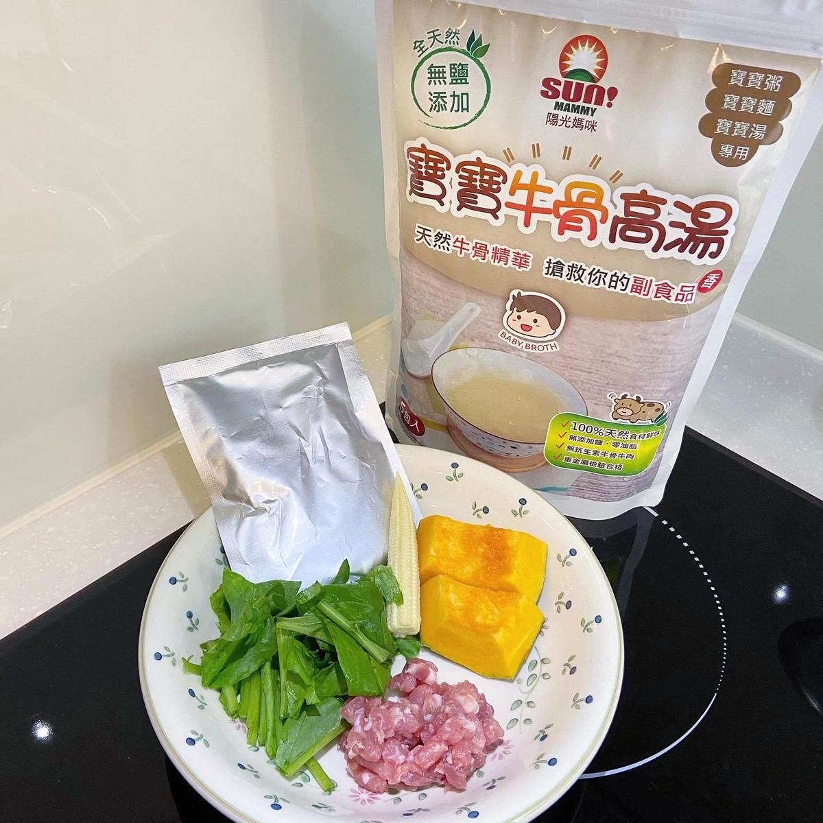 昨天用高湯霏霏做了南瓜蔬菜肉肉粥(南瓜、菠菜、豬肉碎末、玉米筍、雪白菇),成品連媽媽我都覺得好好吃😋