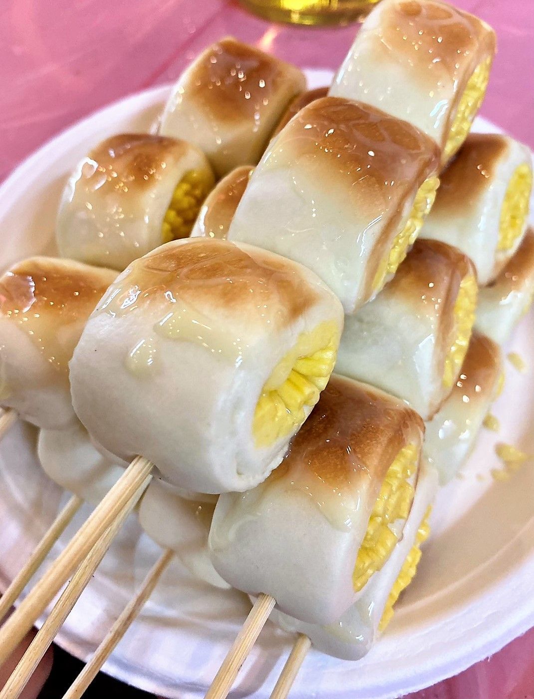 烤麻糬、煉乳銀絲卷這兩道是飯後甜點,雖然大家都飽到天靈蓋了,還是嗑光! 小女兒大推麻糬,他自己一個人吃完一整串~