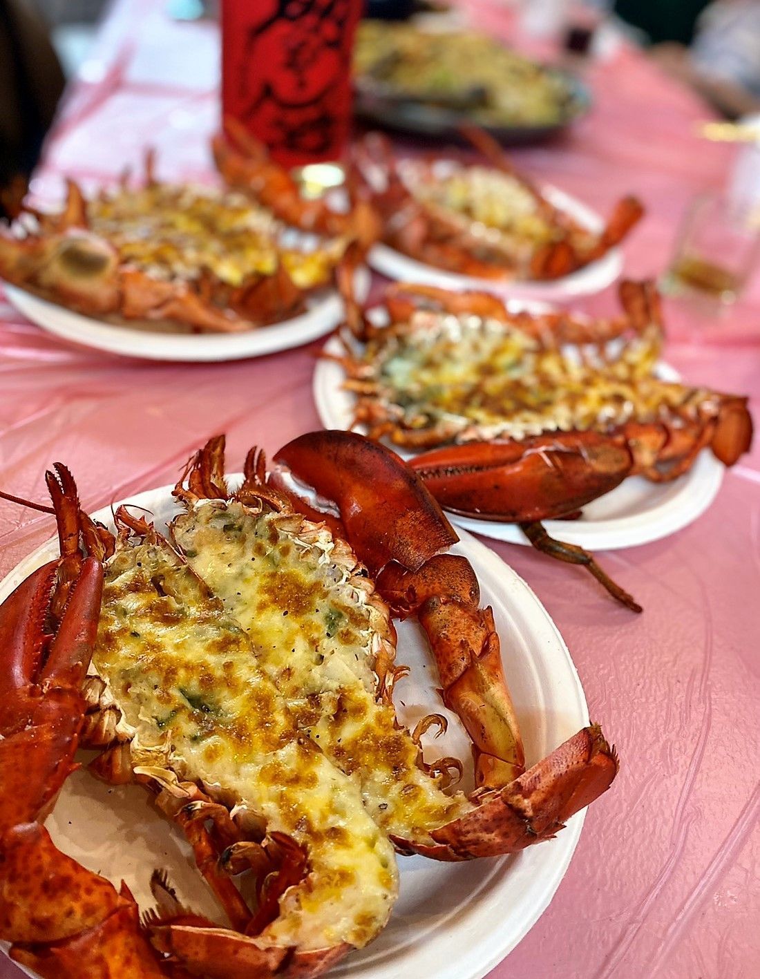 住在一個要開車10幾分鐘才有一家7-11的山裡面,可以吃到焗烤龍蝦真的很浮誇! 一上桌大家都驚嘆,而且口感和口味都還不錯~