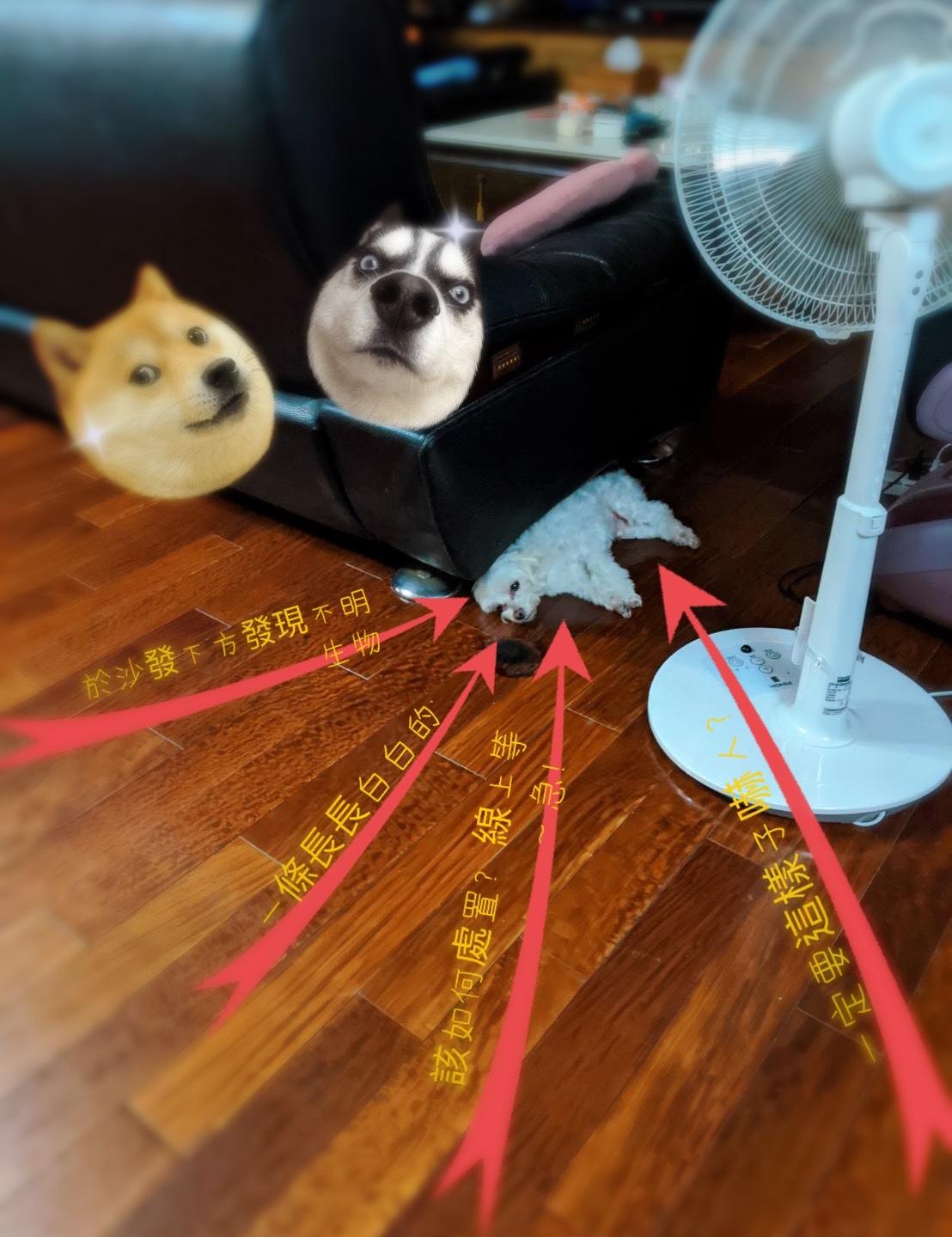 某游性住戶於今天5/18 傍晚6:30在自家沙發底下有一條長長白白的不明生物,請問該如何處置? #寵物#狗#嚇人#可愛#怕我太無聊嗎?#該如何處置?#叫我春姨