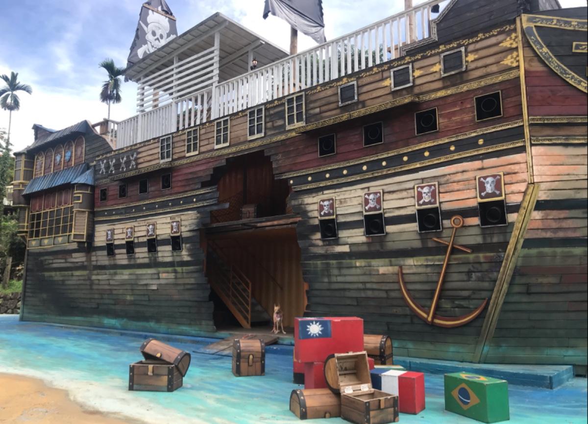 再往前走一點,大家都會睜大眼睛、驚嘆一聲「哇~~~」居然有一艘超大的海盜船!這時候會忍不住在心裡吶喊:「成為我們的夥伴,一起航向偉大的航道吧!」園區也有飼養小動物,請不要去驚擾他們喲!