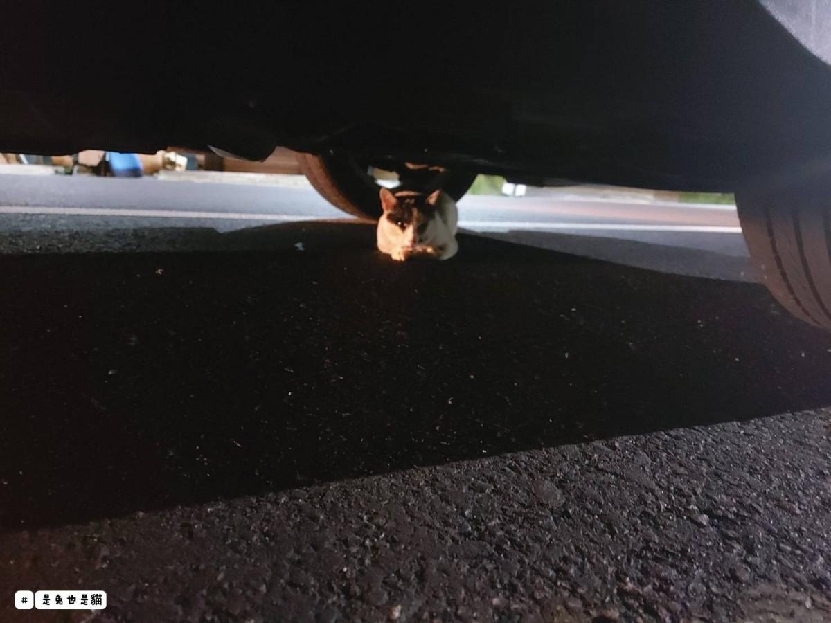 柚子停在貓咪的後方打雙黃燈,我們並下車看看