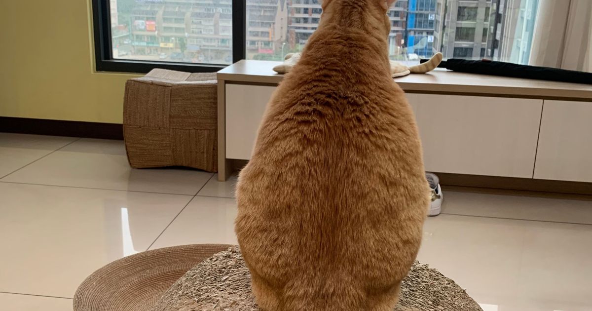 朋友家正宗「橘貓」名叫豆豆喜歡坐在貓抓板上看向窗外思考貓生.....(晚餐吃罐罐.....)