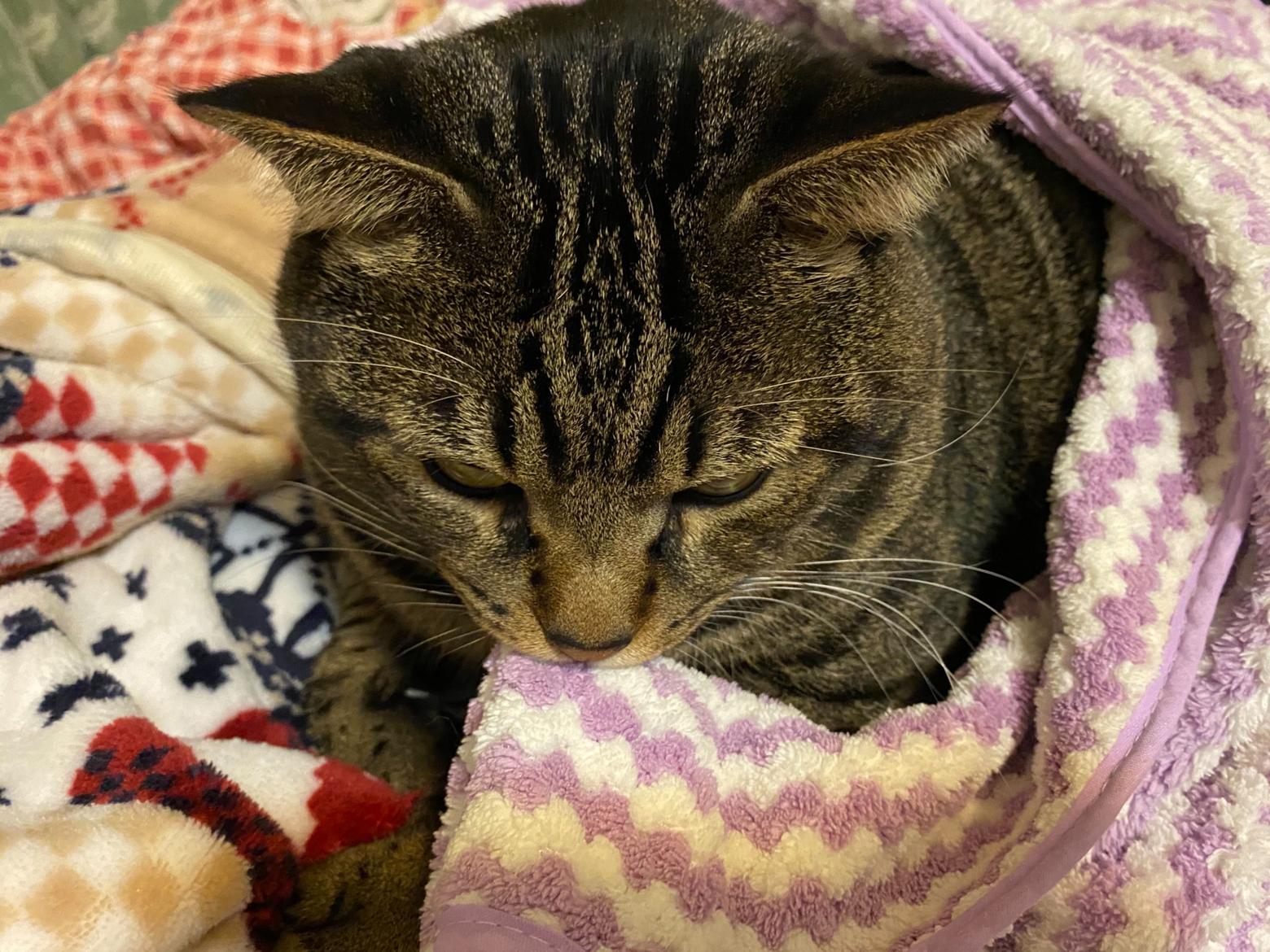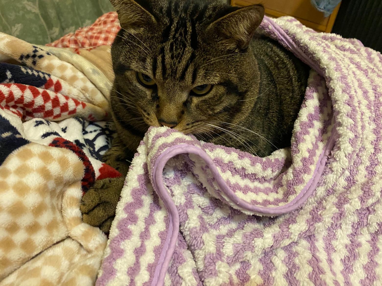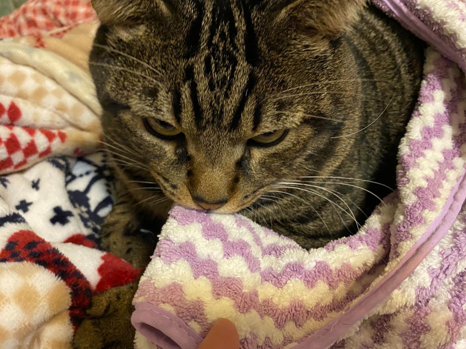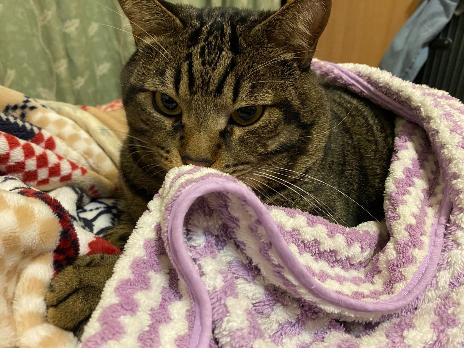 怕棉被被搶走的肥貓