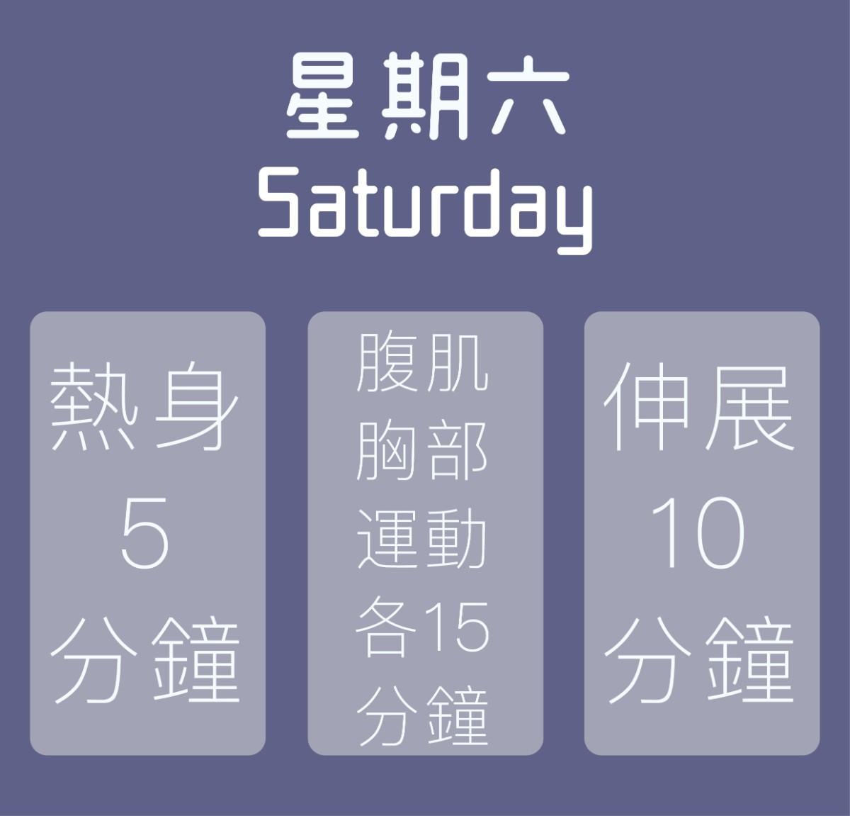 第三天已有氧運動為主,可以讓身體的新陳代謝速度加快,如果你不是容易低血糖的體質,建議在空腹的時候運動喔!運動完再吃健康早餐。