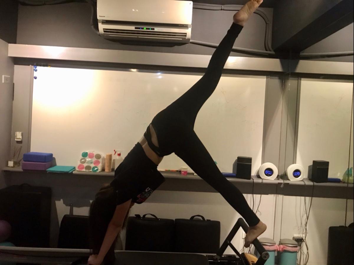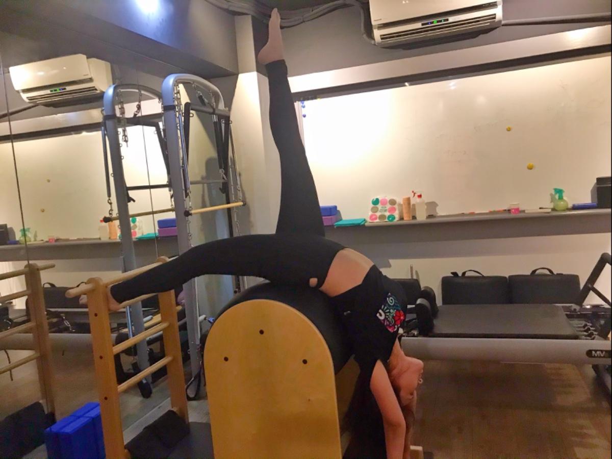 難的部分是像下面這項動作一開始可能會怕怕的, 不過因為PILATES器械課一定要有專人在旁邊指導, 所以其實也是算很安全的, 不用太擔心~