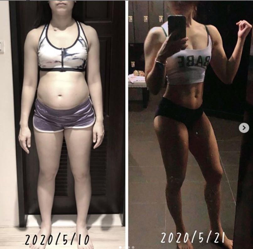 應該是之前累積的肌肉們沒有離開我再加上又開始簡單的吃健康的食物拿掉多餘邪惡的食物神奇的照片就這麼出現了當然燈光角度拍照角度時間也都是很重要的啦😎