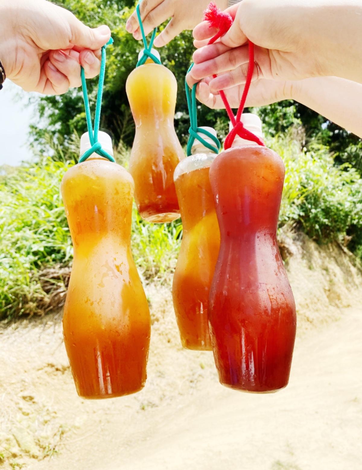 我們各自買了不一樣的飲料,我買了冬瓜檸檬/40元,也很貼心的在瓶口處繞了繩子讓我們好拿。