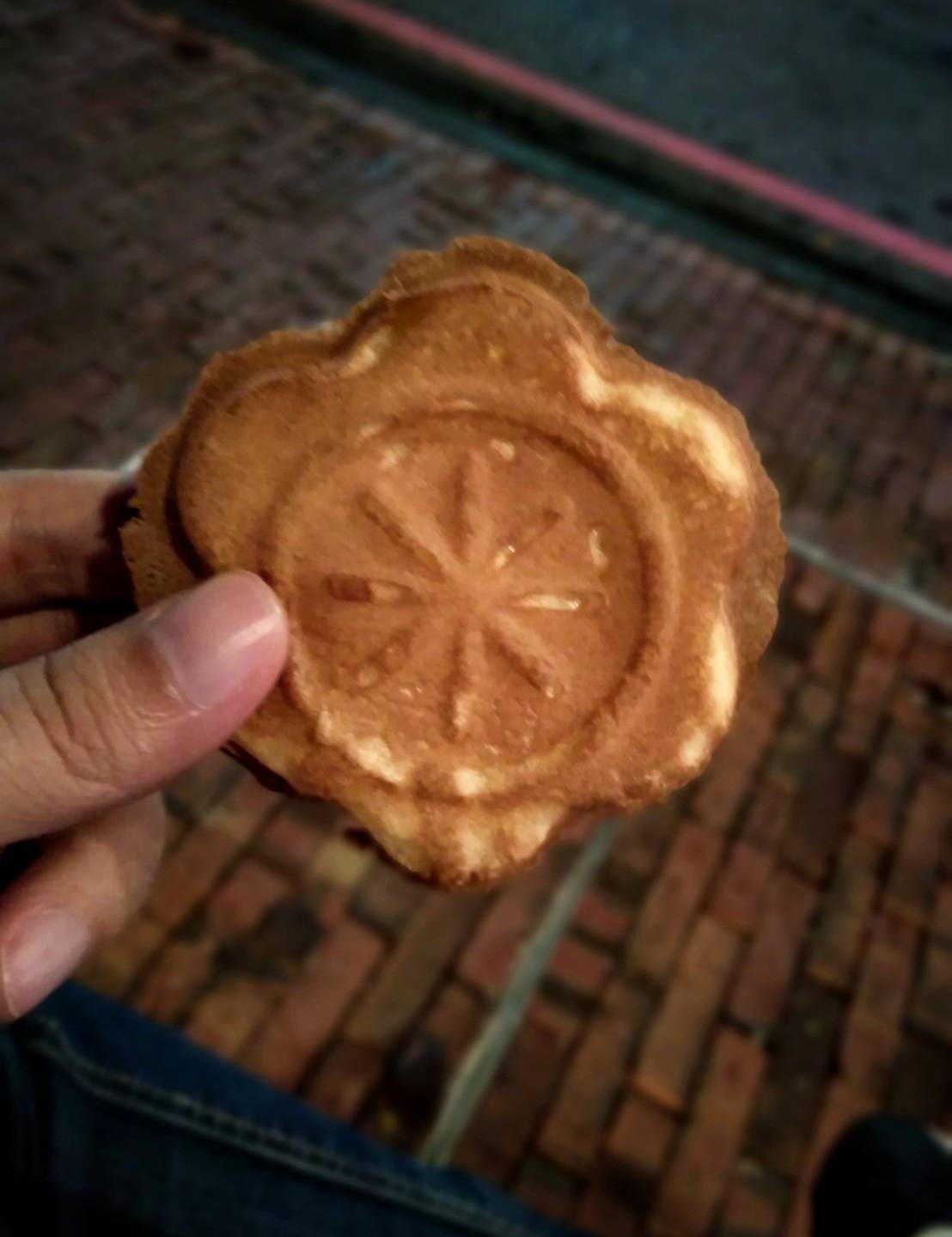 接著我們分頭進行,一人排著郭潤餅、另外兩人排西大發城隍包,最後再一起排梅花雞蛋糕。