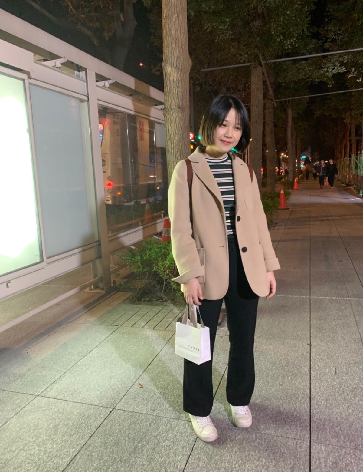 台北天氣忽冷忽熱,橫條上衣+羊毛外套