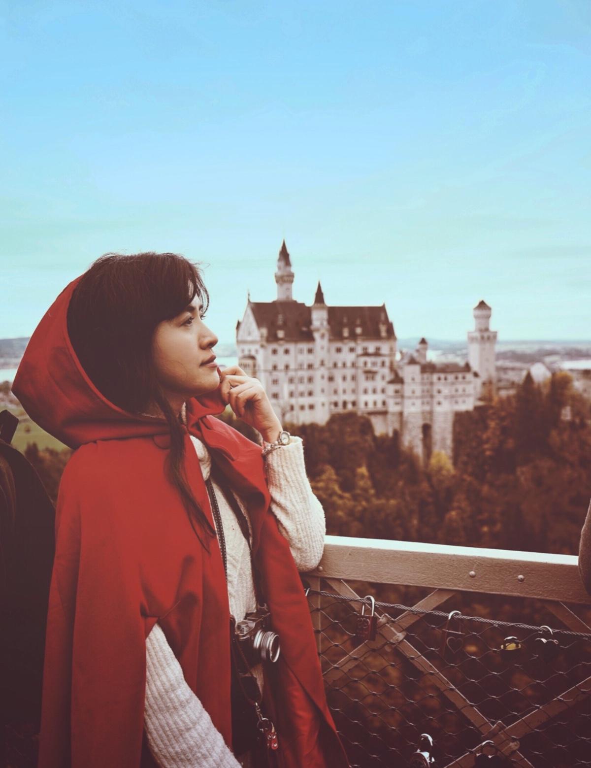 童話故事書裡少不了夢幻城堡,我挑了長版紅色斗篷,小紅帽跟夢幻城堡的結合,增添一股浪漫氛圍,好少女風。