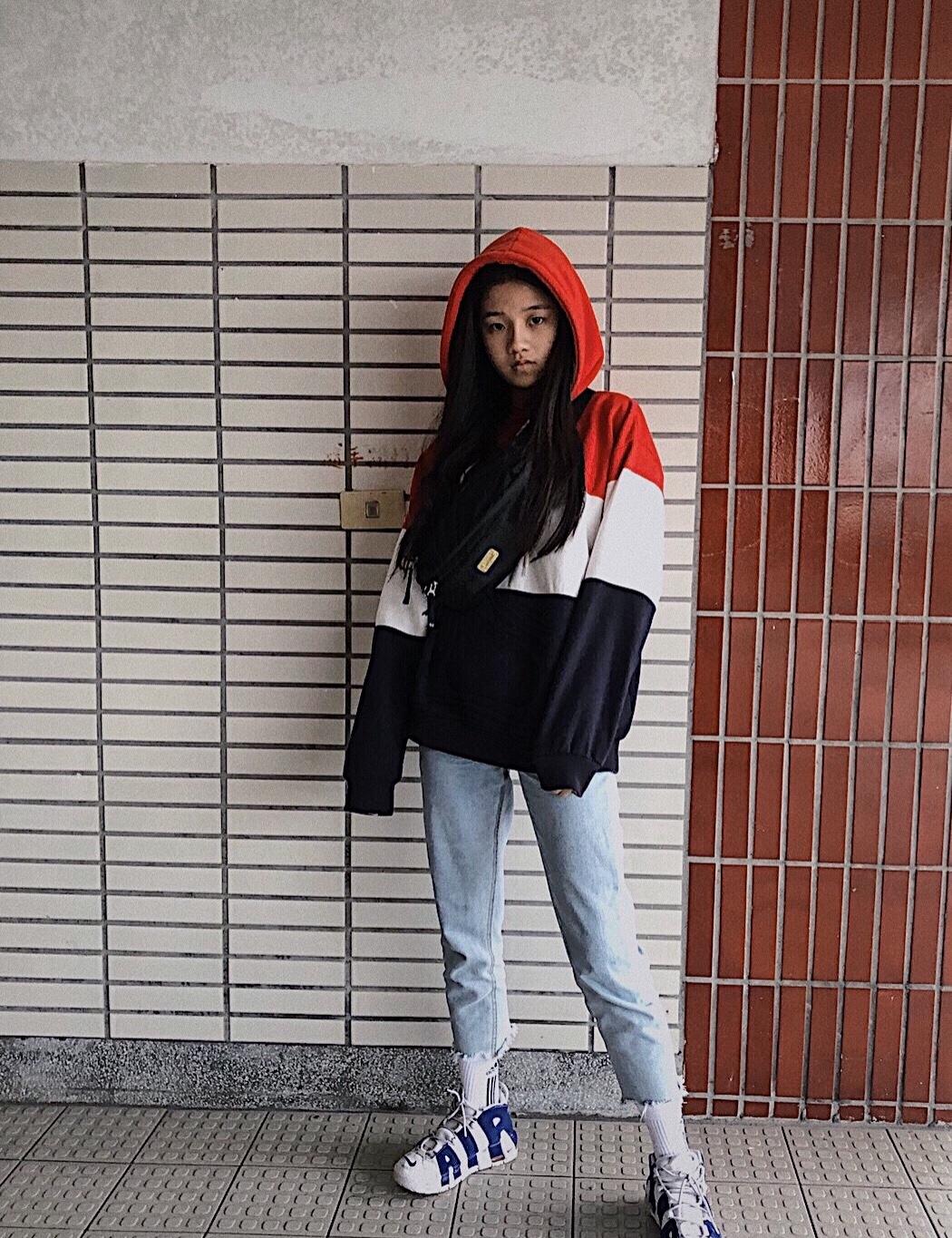 大學生 穿搭男友大學T✖️8分直筒褲