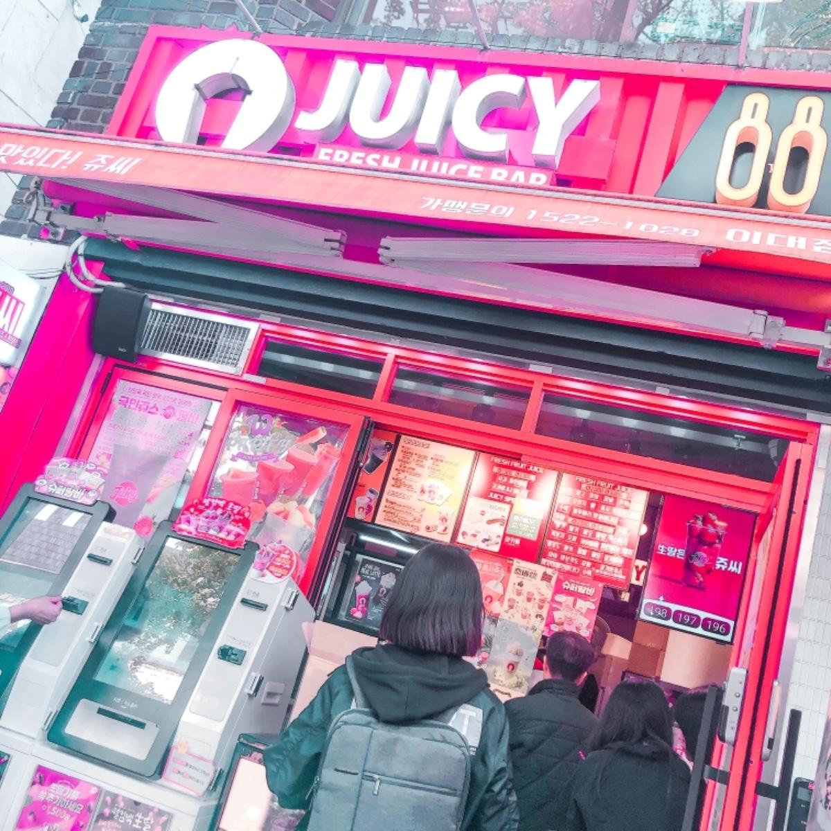 溫差10幾度的概念是什麼~ㄧ個睡醒就沙啞😂😂開口馬上變男人,雖然忙到連買水的時間都沒有,但經過韓國的 @juicyjuice_official 還是要停下來買果汁,這家現打果汁好好喝,有自己點餐機,不會韓文也可以✌🏻✌🏻✌🏻 -
