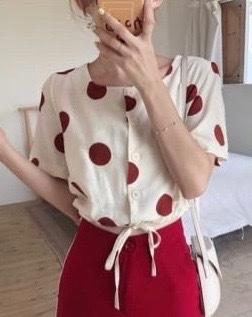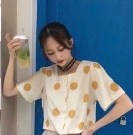 超口愛點點短版襯衫(⁎⁍̴̛ᴗ⁍̴̛⁎)蝦皮🔍Remi小衣舖