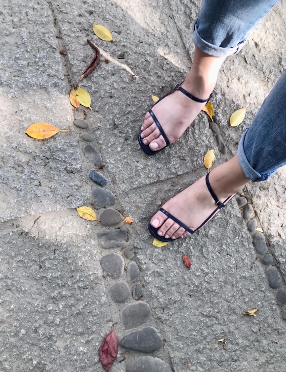 看起來悠哉的照片 其實流了一桶汗😓 推薦一下腳上的涼鞋,深藍色意外襯膚色 第一次嘗試💕 大腳ㄚ的愛牌 上衣、牛仔褲:Uniqlo 皮帶:by_my_wear 涼鞋:d+af