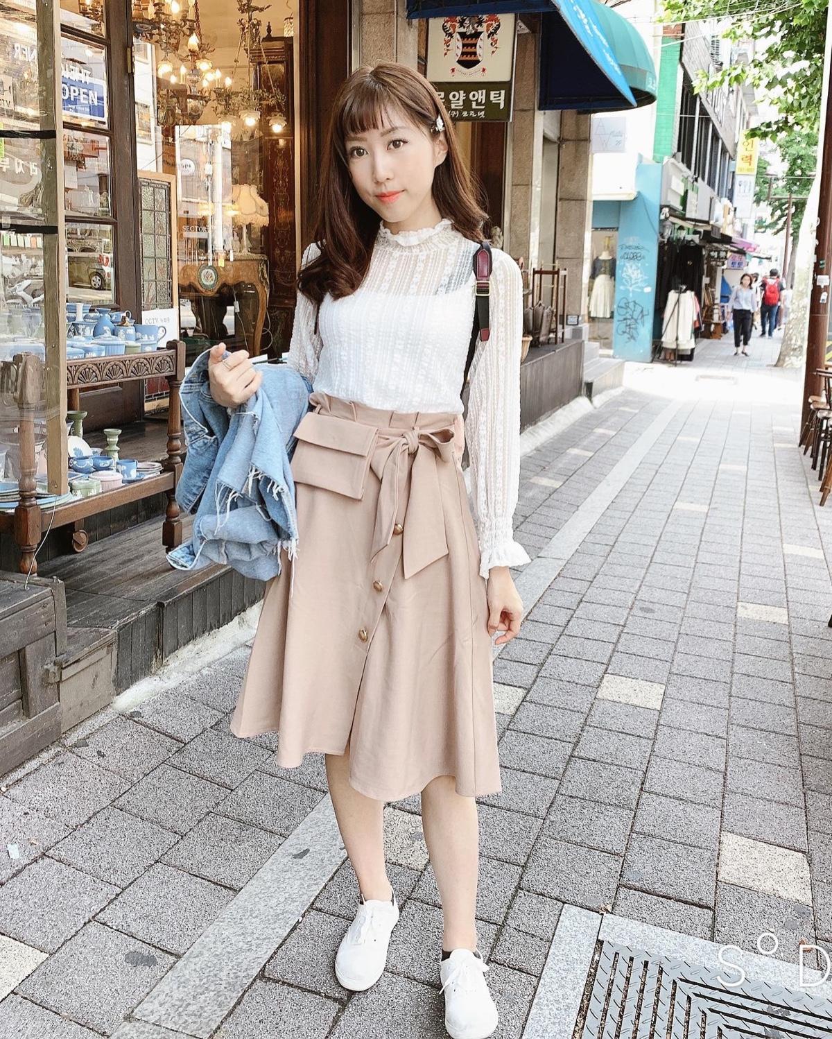 太滿意這天街拍的穿搭了💕💕 雖然不懂韓國為什麼今年那麼流行裙子上多加一個小腰包~ 但不得不說穿起來好好看哦 > < !! 跟剛入手的透膚蕾絲上衣好搭😍😍