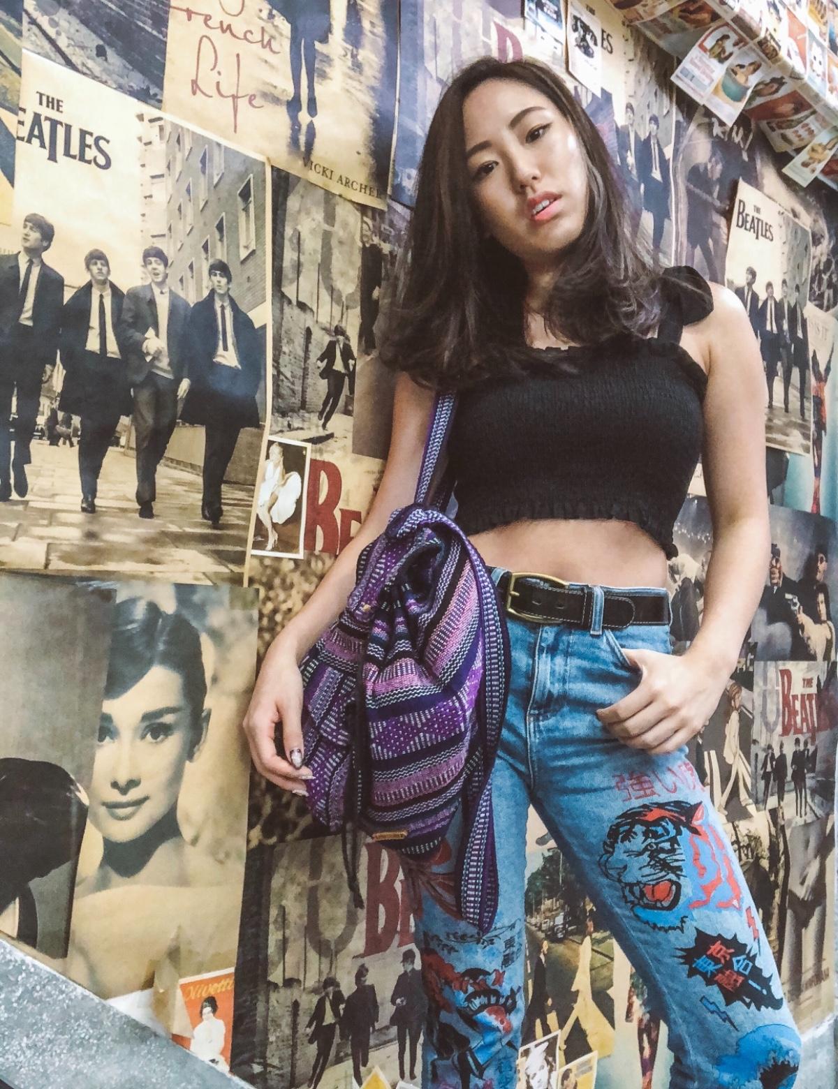 今日穿搭 #OOTD 歐美風搭配民族風包包💜