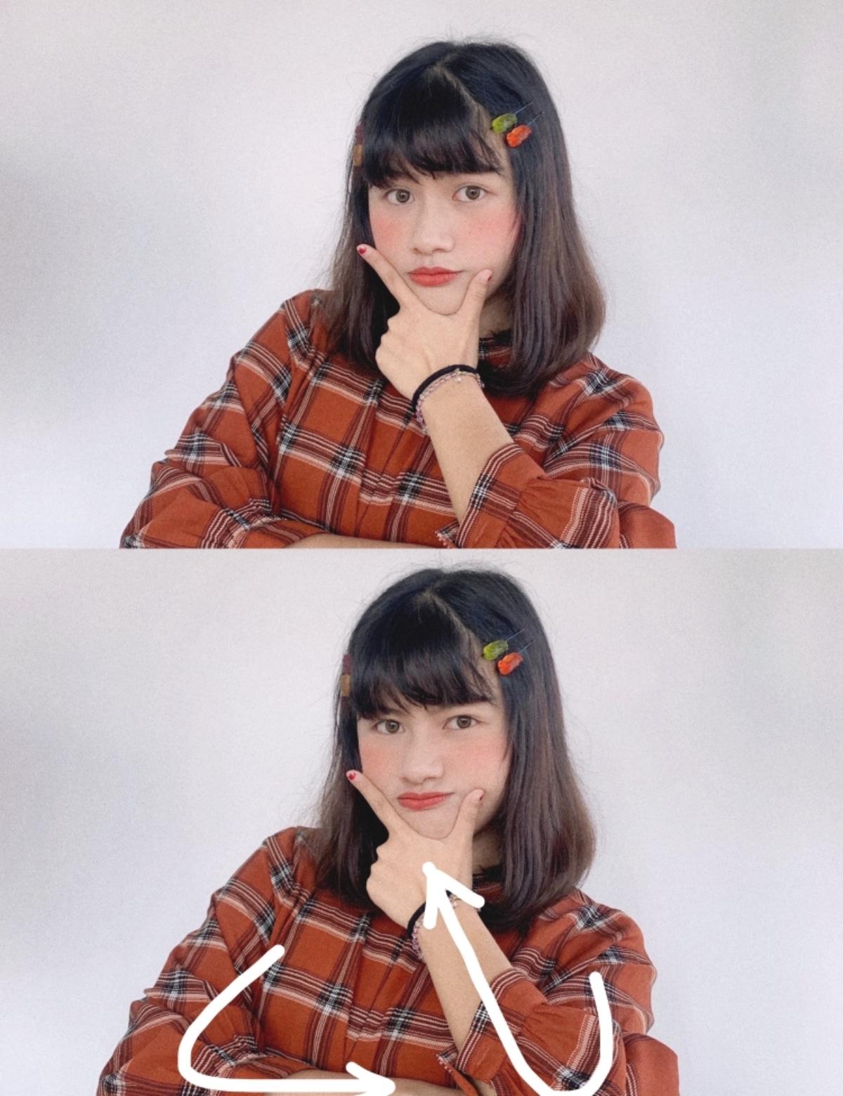 雙手背朝下放在臉頰兩側,小V 臉瞬間get!