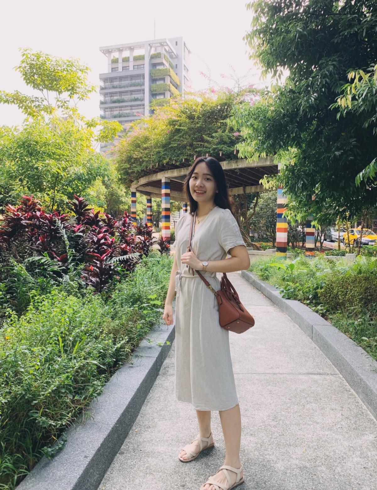 沒想到秋天還有機會拿出這件棉麻的洋裝來穿~
