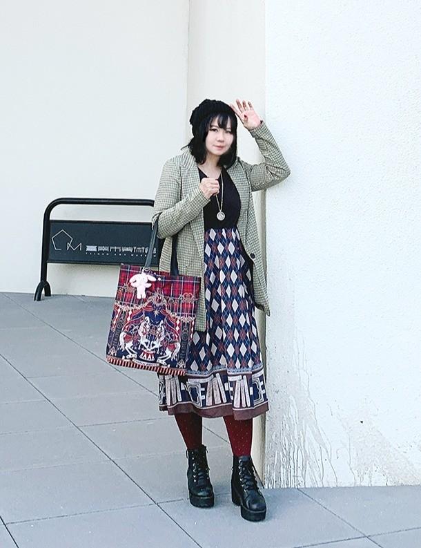 這次的洋裝是上次購入的日本axes femme福袋,洋裝初次穿出門~而且這件也有拉高比例的效果,再穿上短靴的鞋子,150的我看起來有更高一些,彷彿有160了,哈。