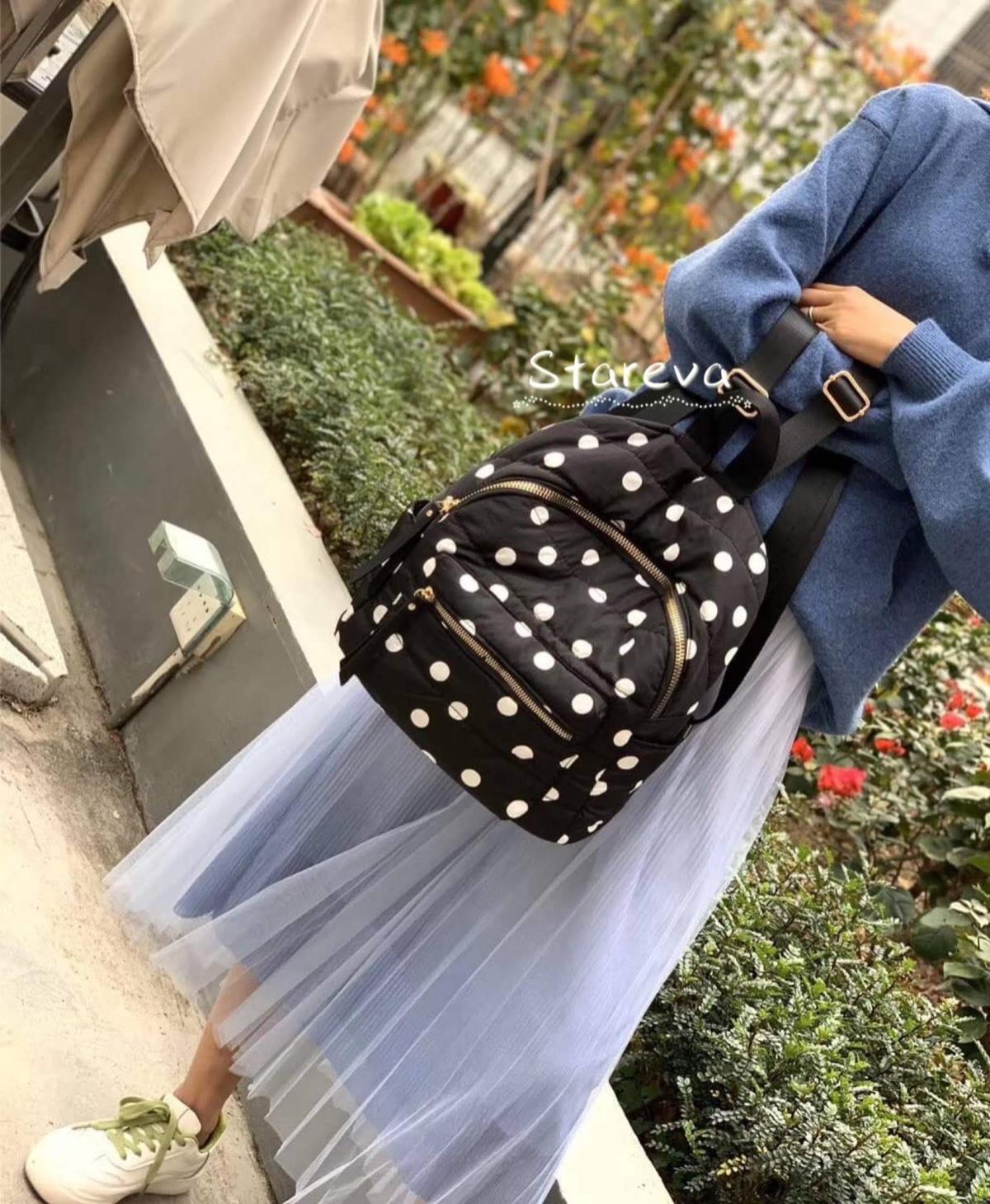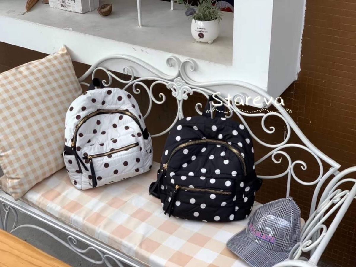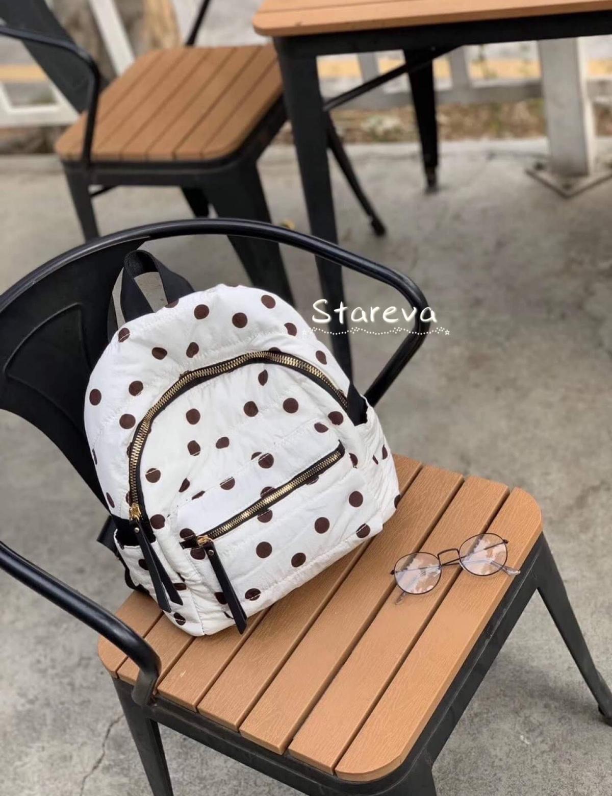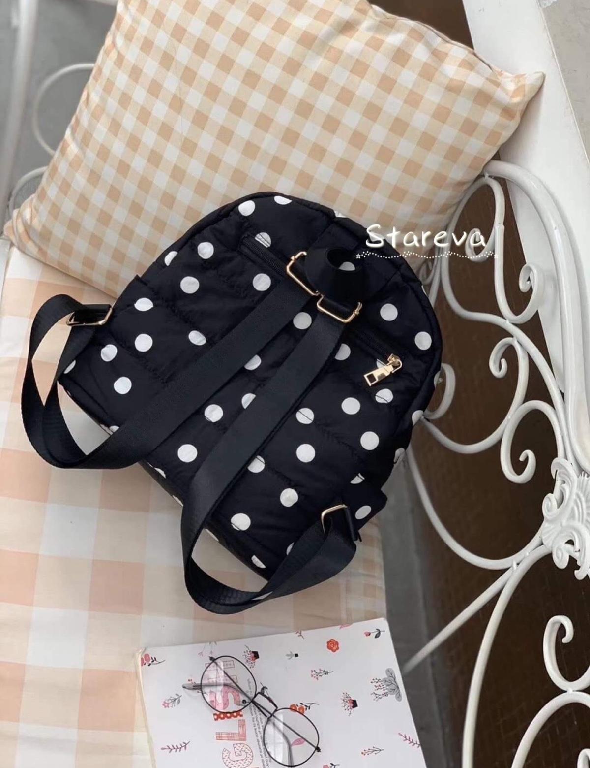 超可愛又實背的點點後背包 前後拉鏈 雙側口袋 容量夠