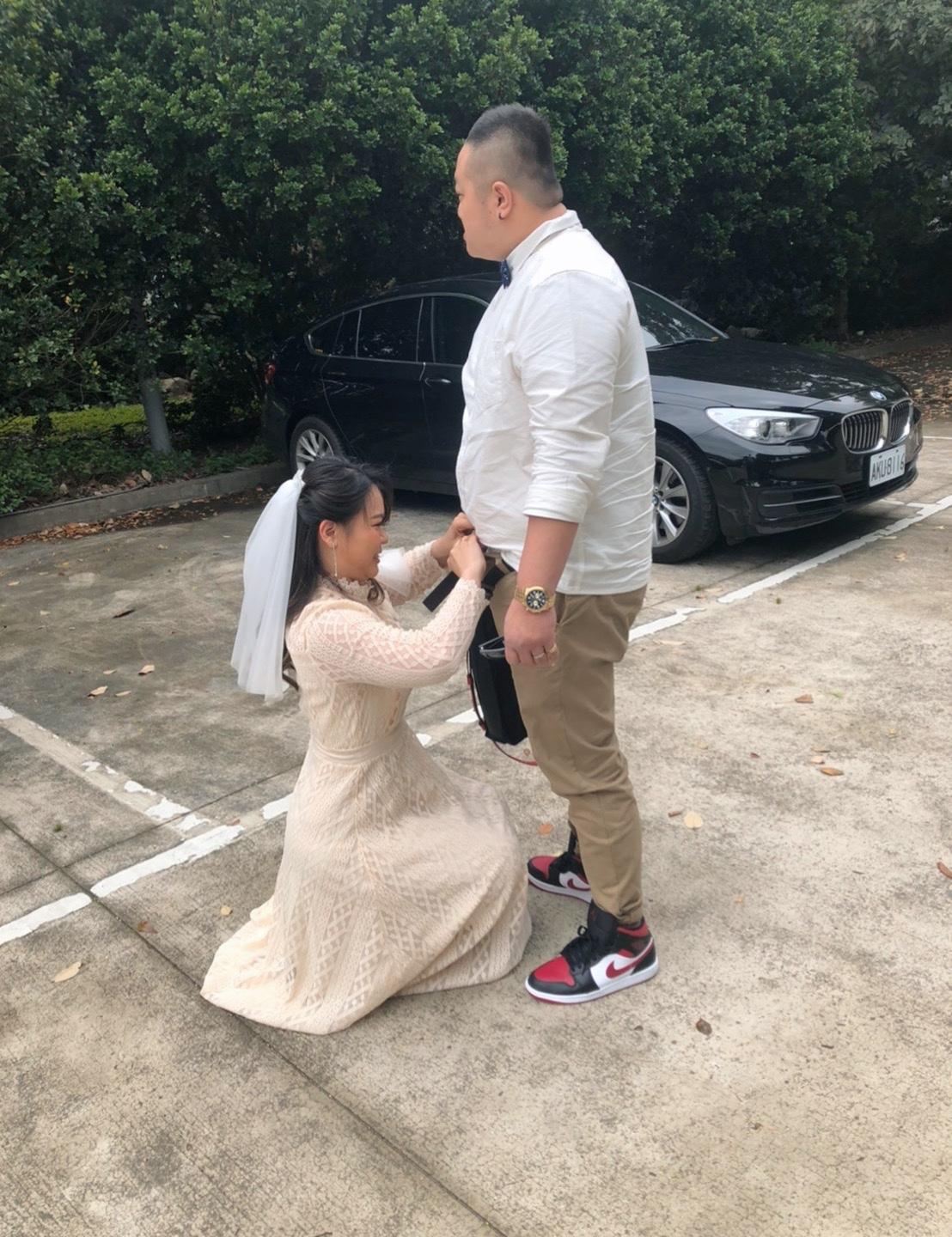 有張照片是我蹲下來幫老公…扣釦子+紮衣服(別誤會唷哈哈)