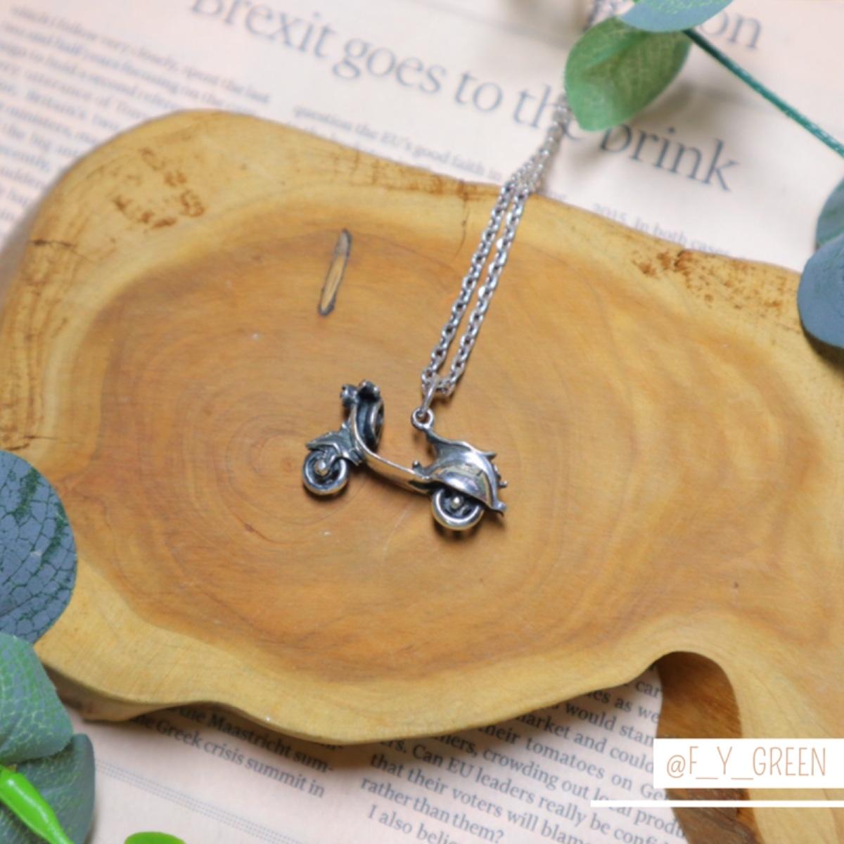 🌟【偉士牌墜鍊】- 這款是我無意間在一間小店買到的,很便宜,因為是泰銀。本身骨子裡就住著一個老靈魂,加上本身就是在玩車,所以看到偉士的相關東西,都會想入手。這條的鍊子是我額外自己買的,原則上穿什麼衣服戴這條都好看。
