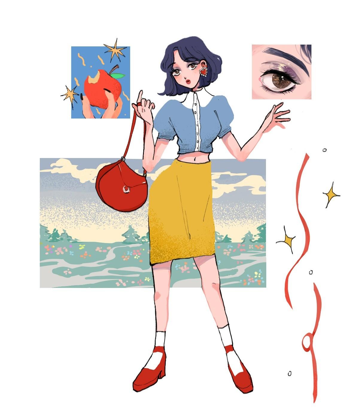 天真爛漫的白雪我是以復古俏皮的服裝做搭配