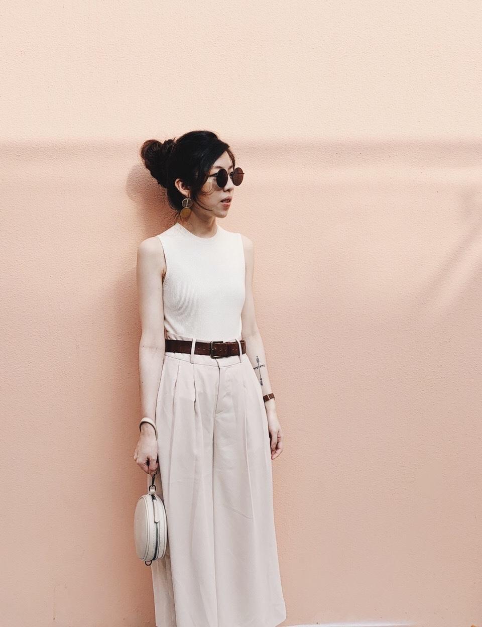不過它的顏色很低調,這次嘗試了全身米白色系,讓皮帶成為主角,竟然有種巴黎街頭的錯覺😂😂 哈哈