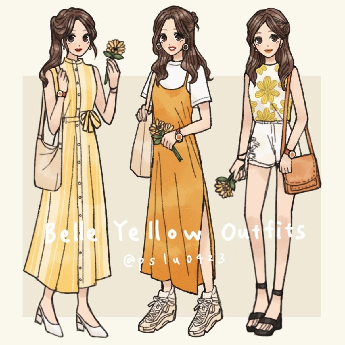 於是再從衣櫃把黃色衣服挖出來,最後遴選的畫成以下穿搭圖,首先來看看圖圖 ٩(๑❛ᴗ❛๑)۶