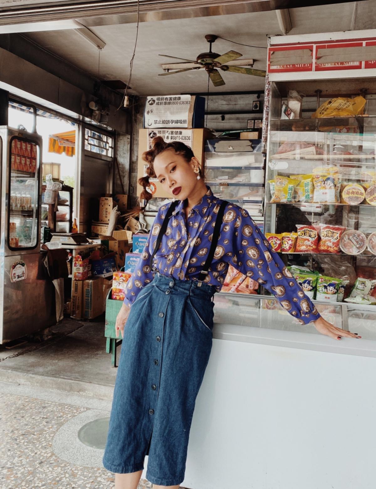 從爸媽復古穿搭分享起😍❤️ 復古服飾有些是朋友給我他們家衣櫃裡爸媽、親戚或奶奶、自己不要的,或是我去市場買 ⭐️復古花襯衫X 30元二手丹寧長裙 復古花襯衫當初是買朋友不要穿的,一件才50$左右超划算😎 為了讓整體更復古,我搭配了在SHEIN買的男士純色背帶120$ 耳環/ nullandvoid_studio 用個小飾品做為點綴,這套不會選太大的飾品,因為會怕影響到服裝是的圖騰。