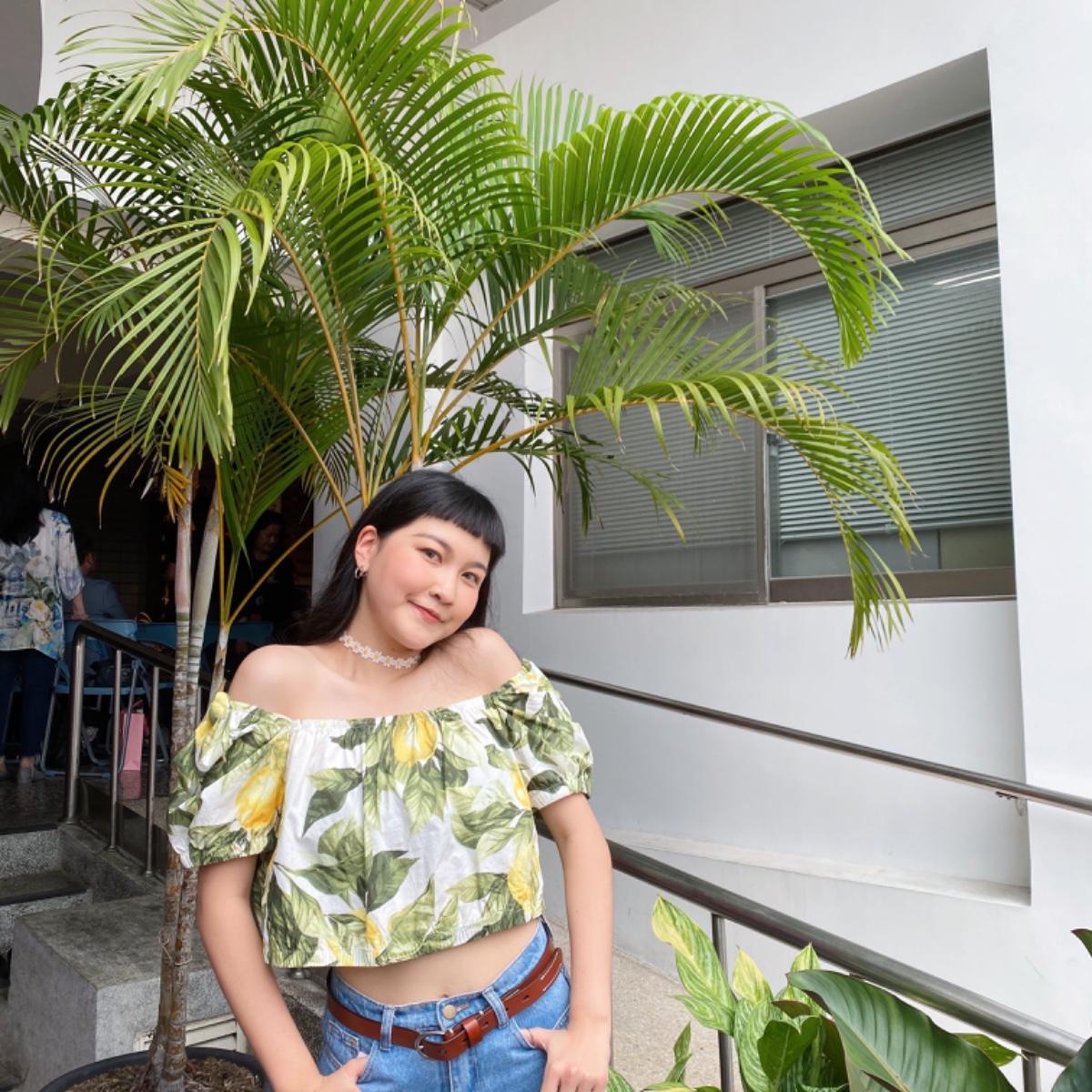 這次畢業典禮我們這組選的風格是夏日風 所以就穿了上次在H&M買的露肩一字領 圖案也很符合這次的組題 超級可愛的樹葉🍃 真的超愛這件上衣~~~🥰 下半身搭配了件高腰牛仔褲 再繫上咖啡色皮帶做對比 去海灘或跟朋友出去玩也都很適合❤️ #niootd #穿搭分享