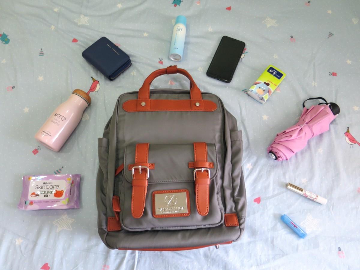 把我的500ml保溫瓶、雨傘、錢包、麵包、防曬噴霧等通通放進去,