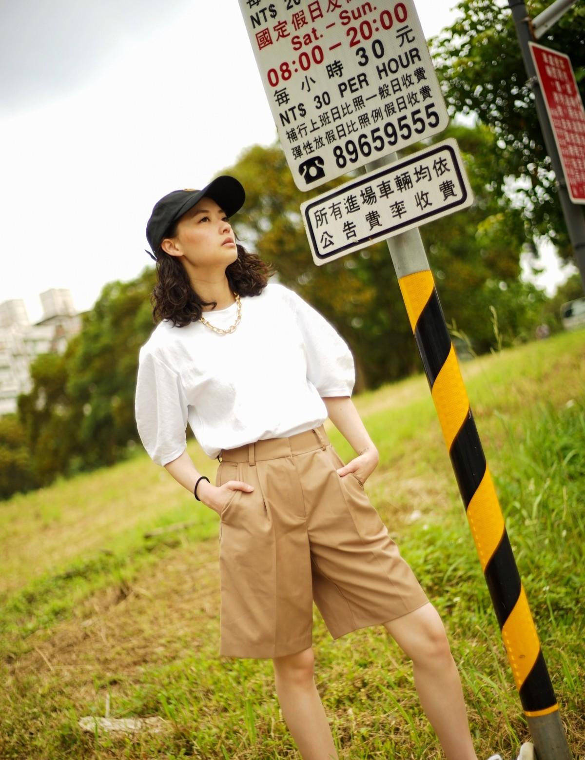大家對於百慕達褲的印象可能會因爲材質以及剪裁所以偏於正式, 其實百慕達褲也可以搭配得非常休閑! 大家可以嘗試搭配像我身上這種今年也很流行的蓬袖素面上衣或是有個性的塗鴉T都會變得很歐美休閑. 比起高跟鞋, 這時候配上雙小白鞋將會更有型哦! 另外對於不知道如何下手買百慕達褲的女孩們可以從中性色系下手, 例如經典的卡其色系或是灰色系.