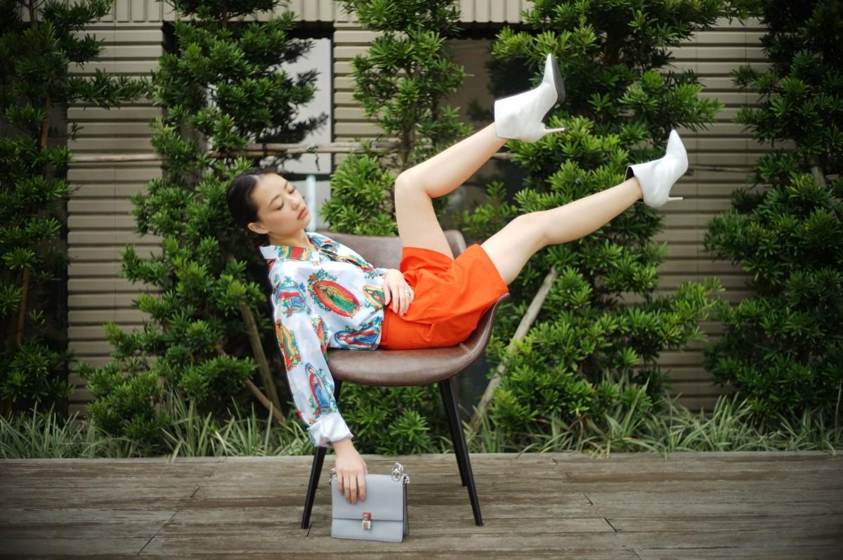 百慕達褲簡單來説就是短版的西裝褲, 在夏天女生可以搭配西裝外套成套穿也可以搭配襯衫, 會非常的瀟灑! 勇於嘗試的朋友可以跟我一樣選擇這種大膽的亮色系和相呼應的戲劇化上衣, 穿出一種都會叢林的感覺! 也可以是時尚陳雷風啦~