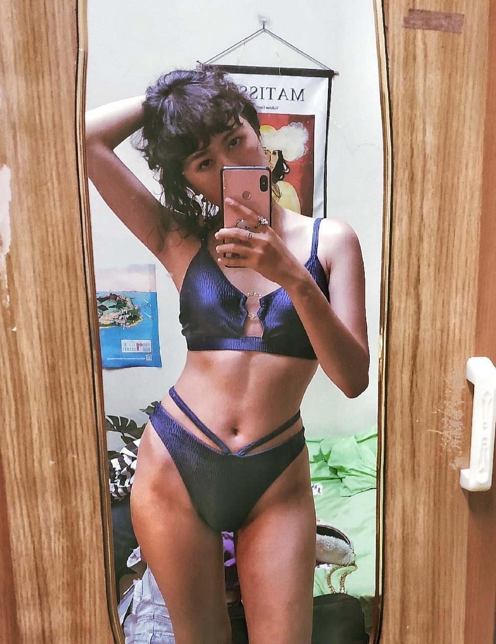 像我身材屬於偏瘦,胸部沒什麼肉,穿bikini時,幾乎都撐不起來😩導致我一直不敢下手買基本款的bikini,只能買削肩類型的。