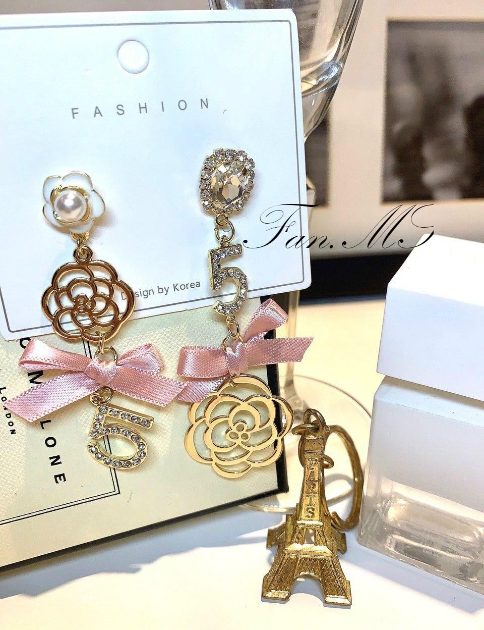小香風元素有山茶花、N5、蝴蝶結、小女人、小包包、香水、珍珠小流蘇等配件組合,顏色多為金色、玫瑰金、黑、白、粉紅,組合起來通常比日常款耳環浮誇精緻一點,能充分表現出小香風的傲慢與霸氣。