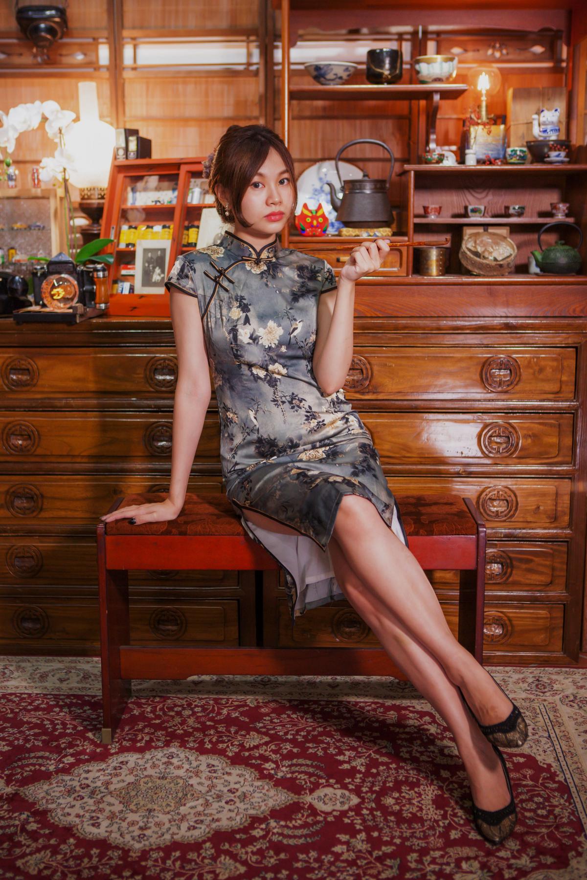 來到大稻埕,漫不經心的走在迪化街上,意外發現一家古色古香的旗袍店,老闆娘細膩的巧手,為我們點綴妝容之外,也為我們梳理了更襯托出旗袍的髮型,走到店家樓上即是一處攝影棚,擺設更是極具傳統復古