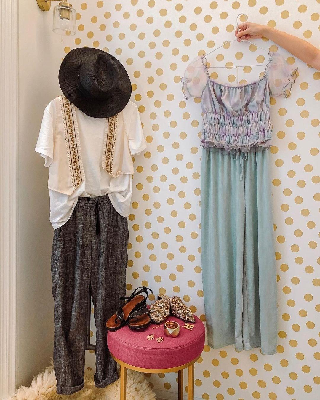 澎澎袖的紗質短版上衣與帶有微微光澤的素質長褲,充滿獨角獸的神秘感