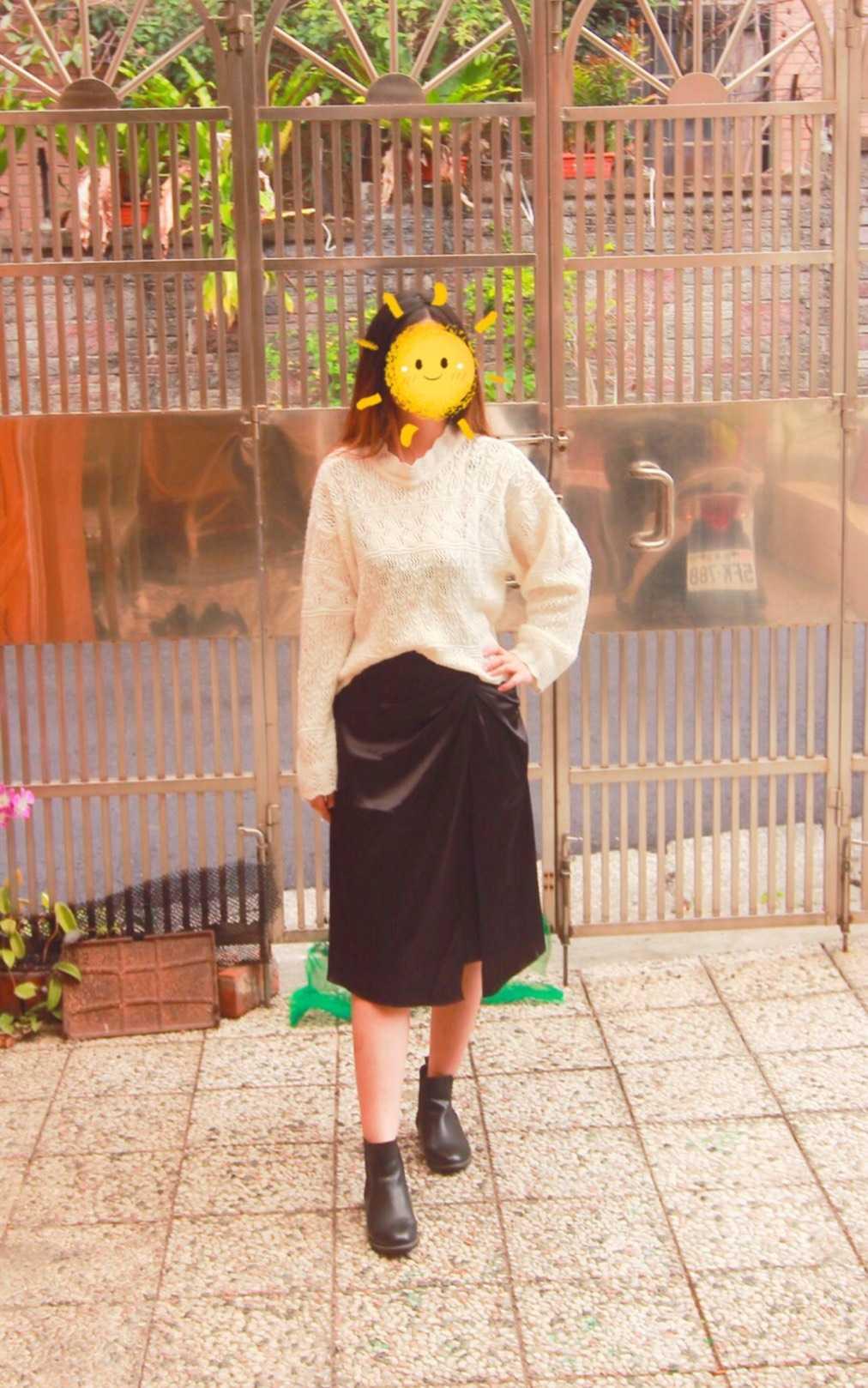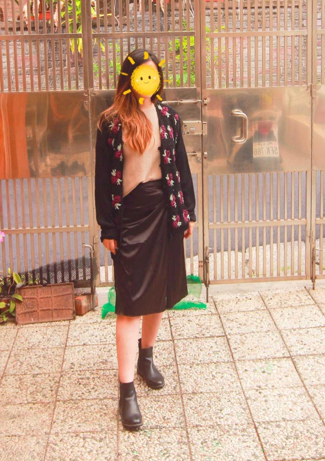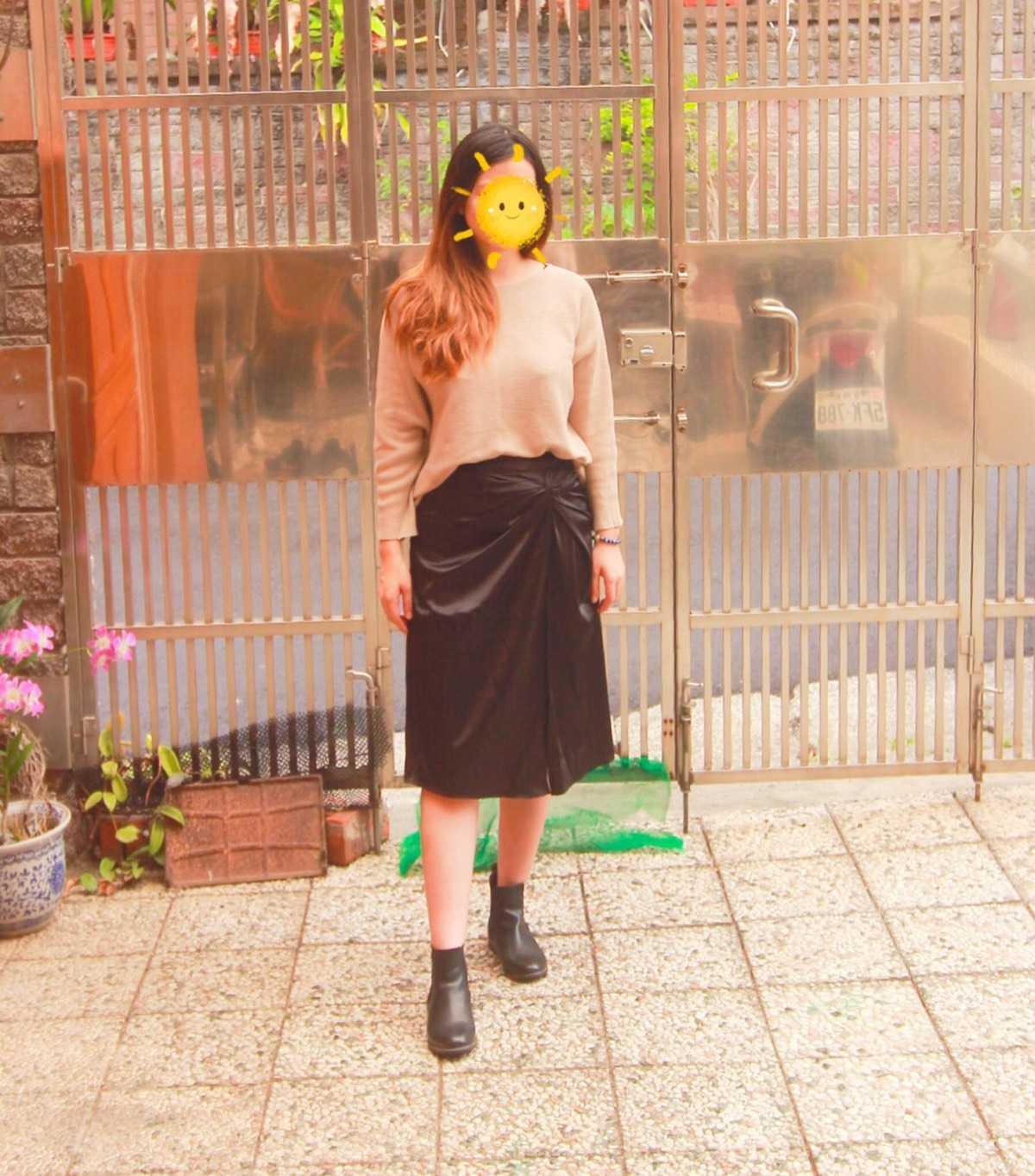 感覺緞面裙就是可以搭配一些簡單的上衣,看起來就會有低調的華麗感,