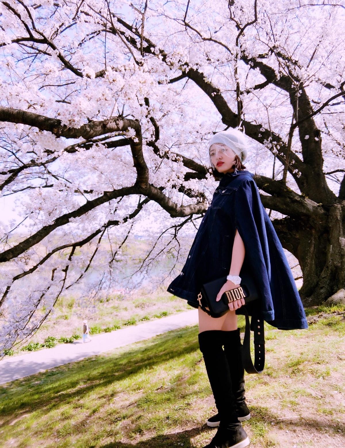 爆開的櫻花🌸 #Sakura #日本景點 #人爆滿 #櫻花 #賞櫻 #大阪 #牛仔穿搭 #diorbag #過膝長靴 #rickowens