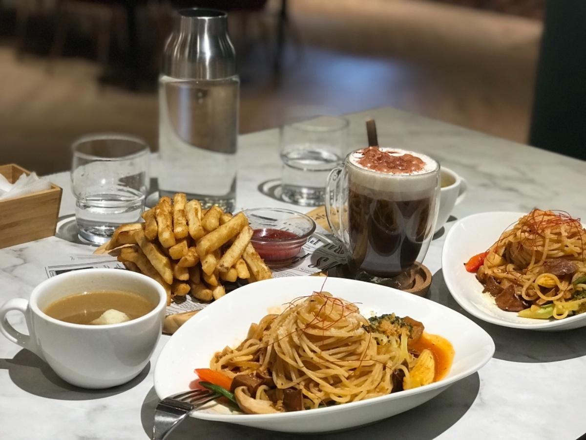 這次點的義大利麵跟一杯可可拿鐵 主餐附了一碗湯