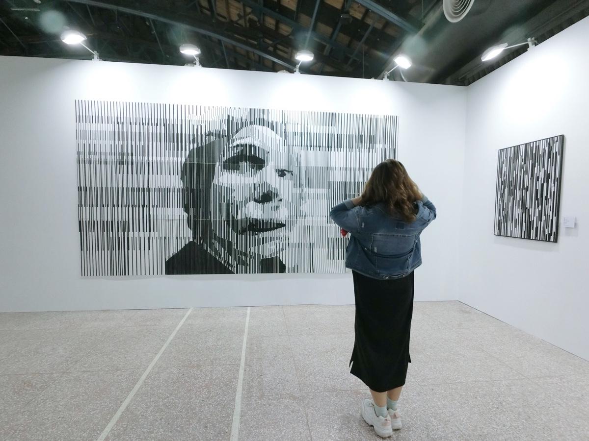 剛進去的第一幅愛因斯坦的人像,很難想像全部都是利用膠帶貼出來的,當然整個展場也都是,在每個作品中還能看到藝術家把環保♻️議題也呈現在其中。